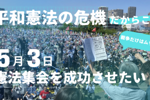 皆さんの「憲法がいきる社会」「戦争ではなく平和なくらし」の思いを、5.3 憲法集会でカタチにしてください。